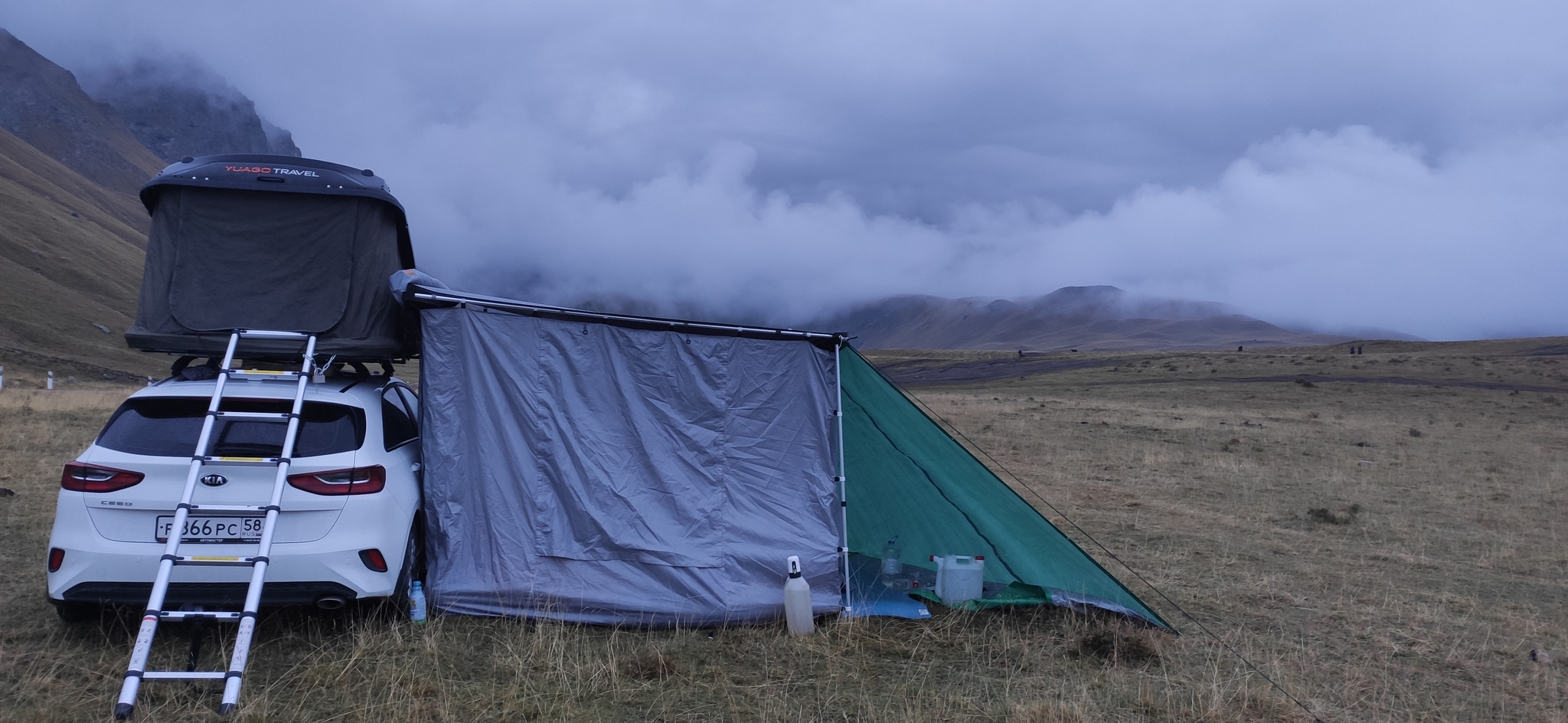 Джилы Су нас встретило пасмурной погодой. Мы провели там два дня и две ночи в ожидании, когда Эльбрус откроется, но так и не дождались.