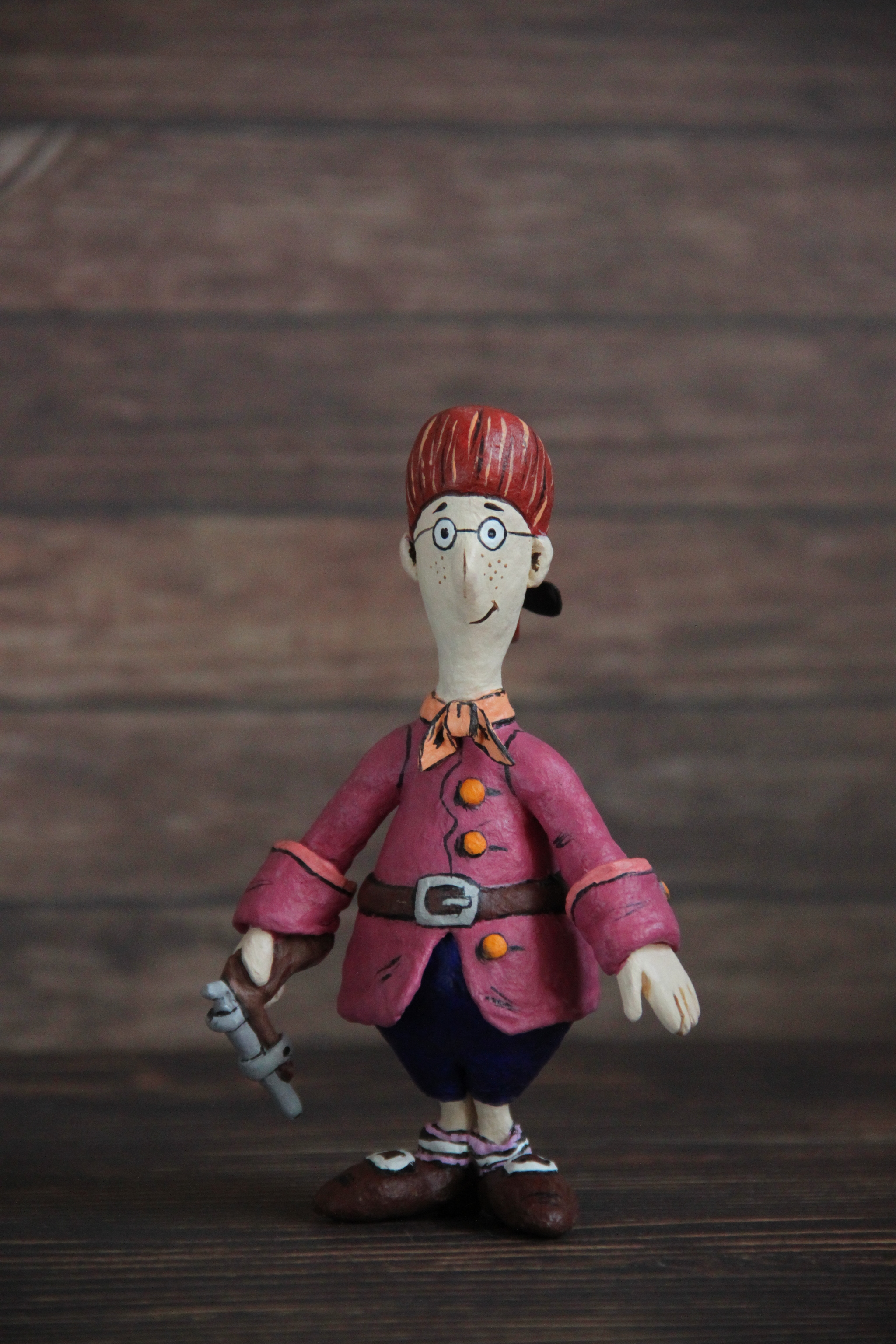 Сделан из ваты и самозастывайки LaDoll, тонирован акрилом, покрыт матовым лаком.