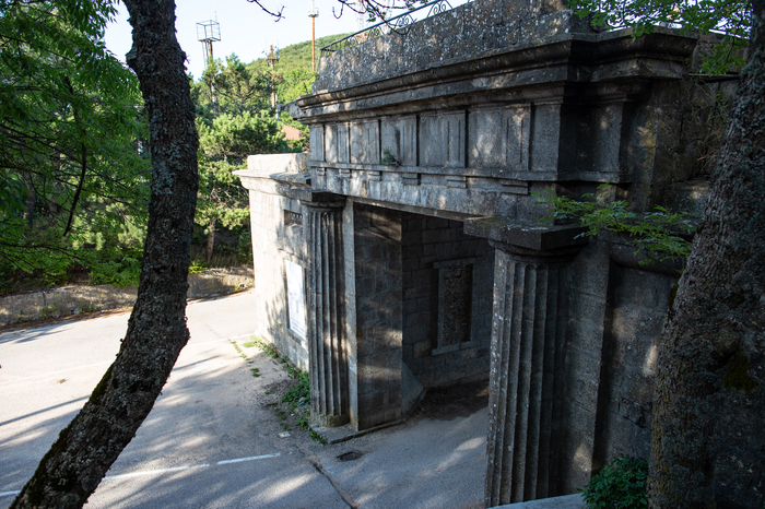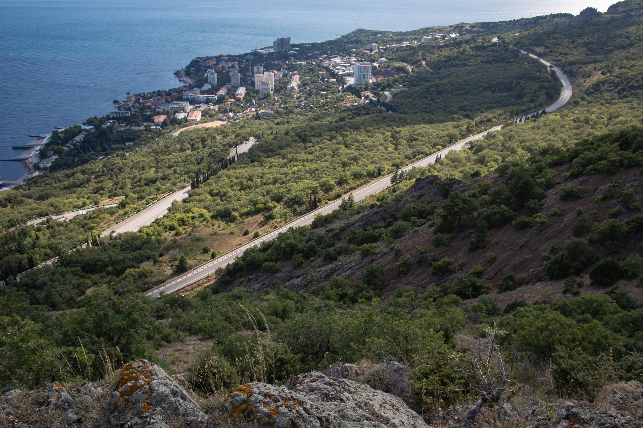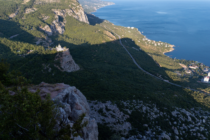 Сами ворота были установлены в честь окончания строительства трассы Ялта-Севастополь 1848 году. Сейчас около них расположен ресторан Шалаш и по слухам готовят тут одни из лучших чебуреков в Крыму, пробовать их я, конечно же, не стал. Открываются, замечательные виды на южный берег Крыма, скалисты и крутые обрывы главной гряды Крымских гор.