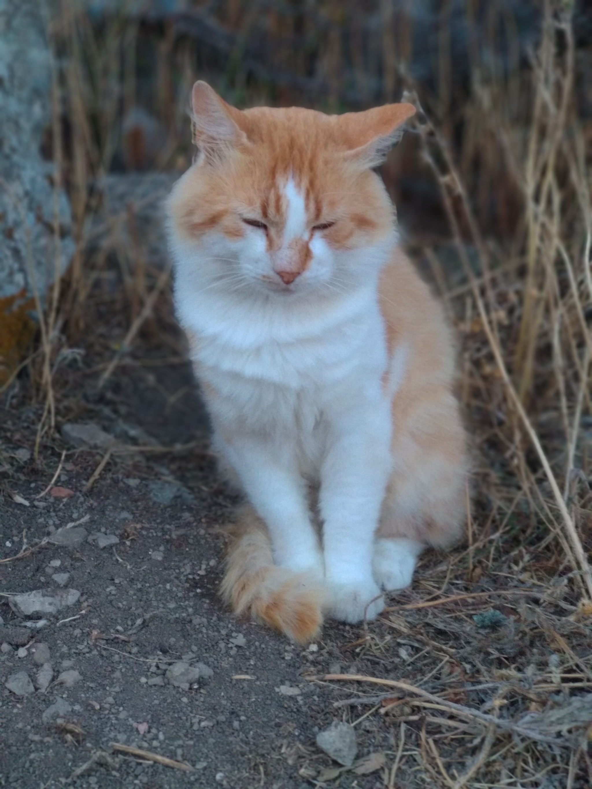 Друзья мои, встретив рассвет, ушли вниз, а на смену к ним пришел кот, часто его вижу у храма, выглядит вполне упитанно и чувствует себя хозяином этих мест.