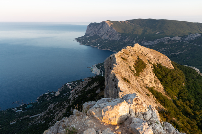 Фотография с горы Форос, я не пошел своим обычным путем поднимаясь на Челеби, а решил пройти низом. Дорога тут мне кажется интересней и есть возможность выйти на видовые площадки с обрывами и видами на каменный хаос, образовавшимся в связи с землетрясением 1927 года, о нем мы так же слышали если ходили на Демерджи, все это действие одного и того же природного явления.