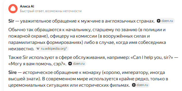 sir это сэр, sire это сир.