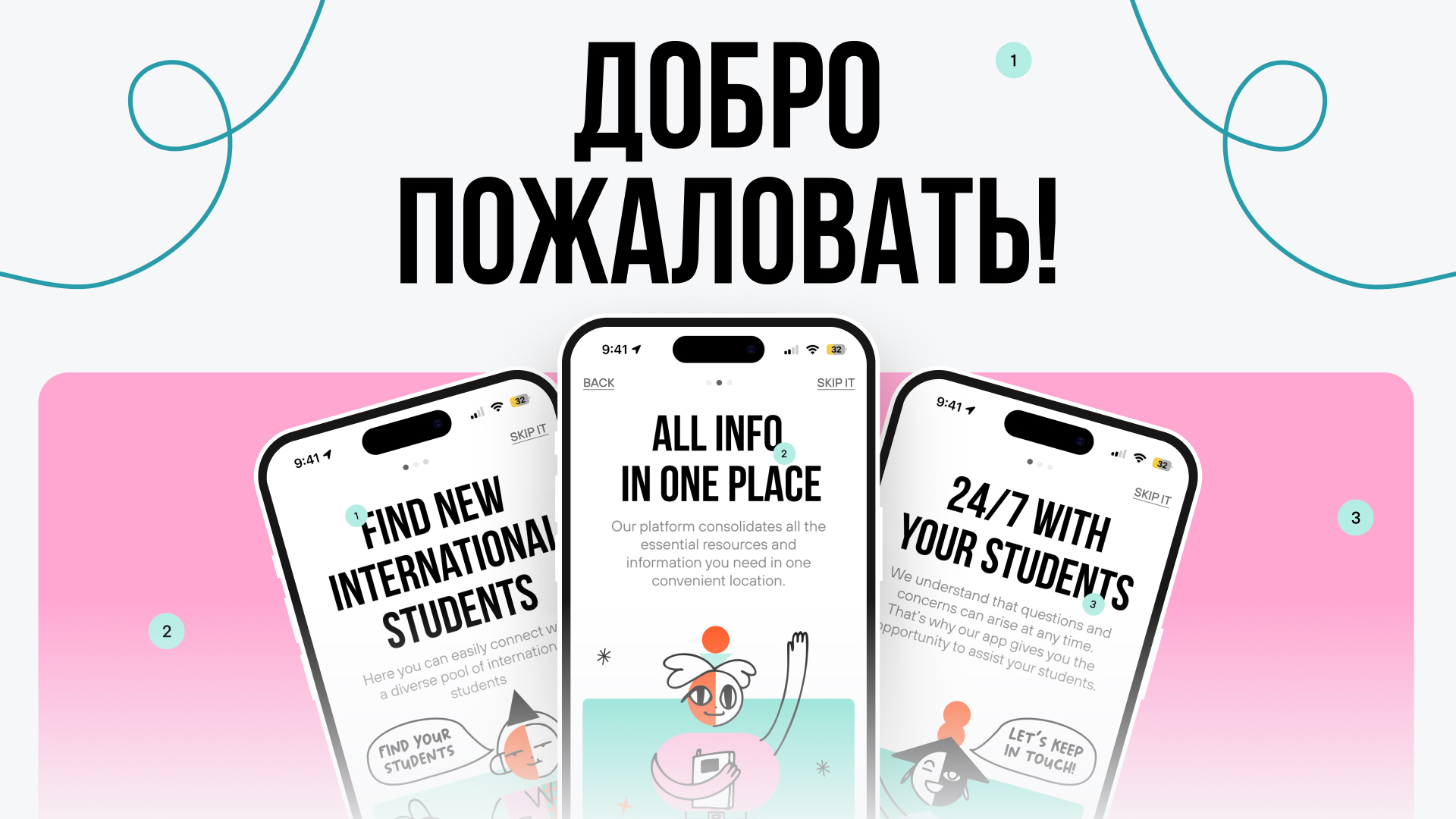 Для создания дружеской атмосферы мы много работали над визуальным стилем. Хотелось сделать так, чтобы даже сам сайт выглядел дружелюбно и максимально просто для понимания — независимо от того, из какой культуры приехал студент.