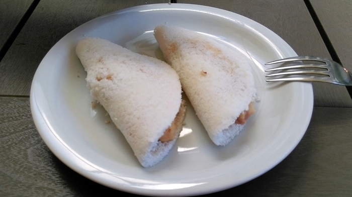 Не могу обойти стороной одно из самых обожаемых блюд бразильцев - лепешки из тапиоки с начинкой (на любителя, если честно, сыну с женой понравились, мне нет), делают их на каждом углу