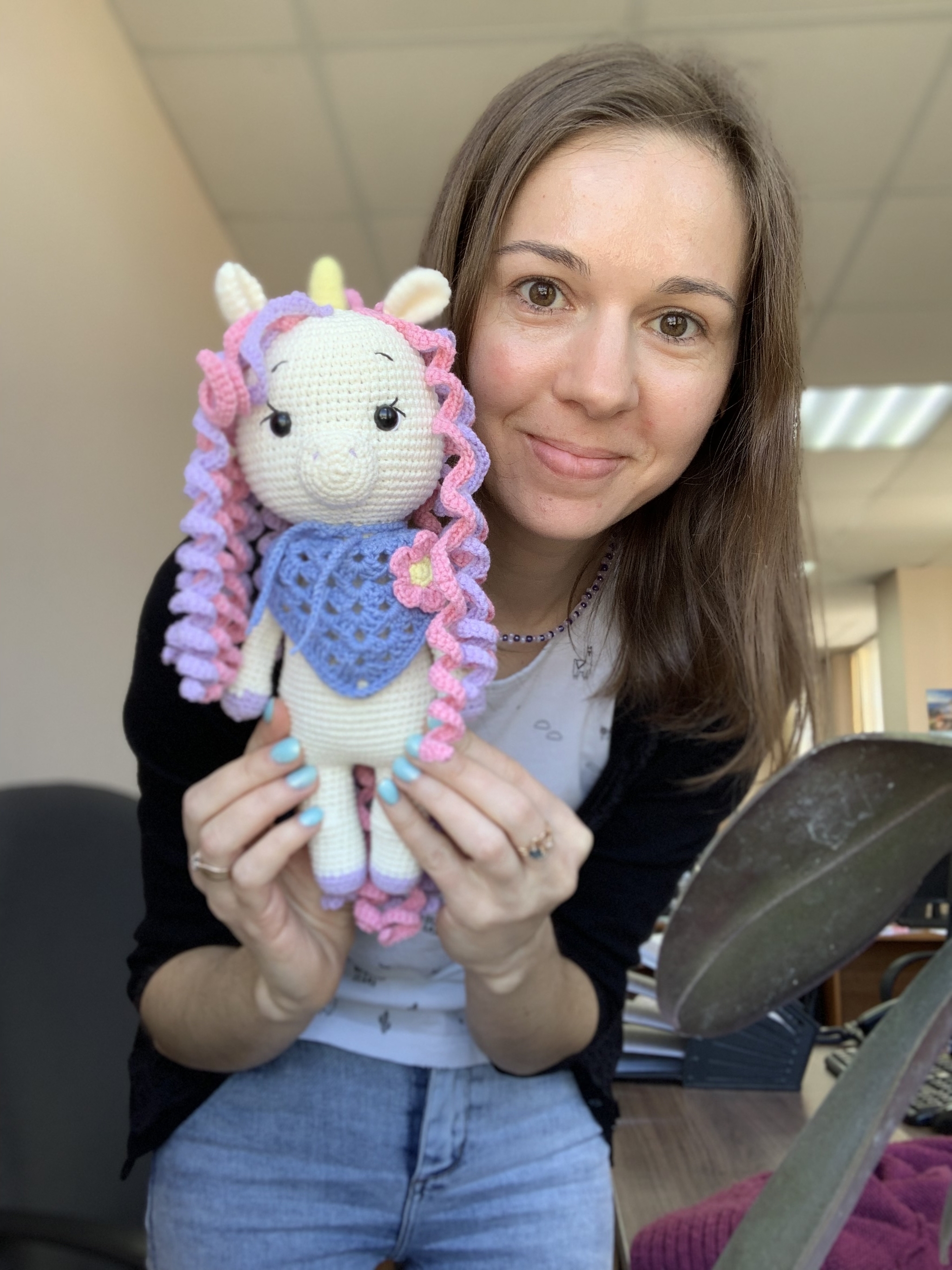 Самое трудозатратное здесь, конечно, кудри. Их много, хвост тоже такой же кудрявый) Даже больше пришивать их муторно, чем вязать.