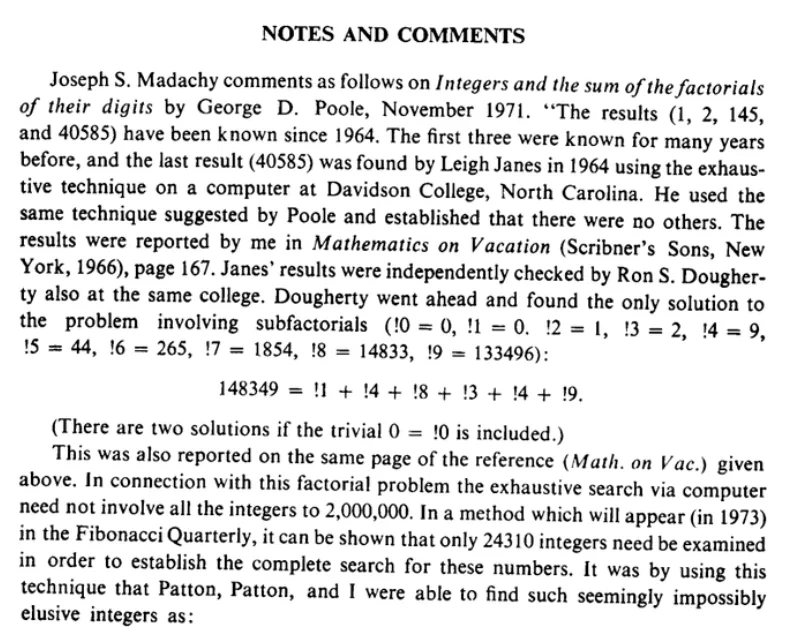 И это единственное число, которое носит гордое название "субфакторион". Первые его следы можно найти в достаточно интересной книжке 1966 года "Математика на каникулах":