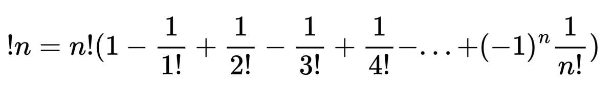 Если подставить "-1" вместо n, то можно получить любопытное отношение между факториалом и субфакториалом:
