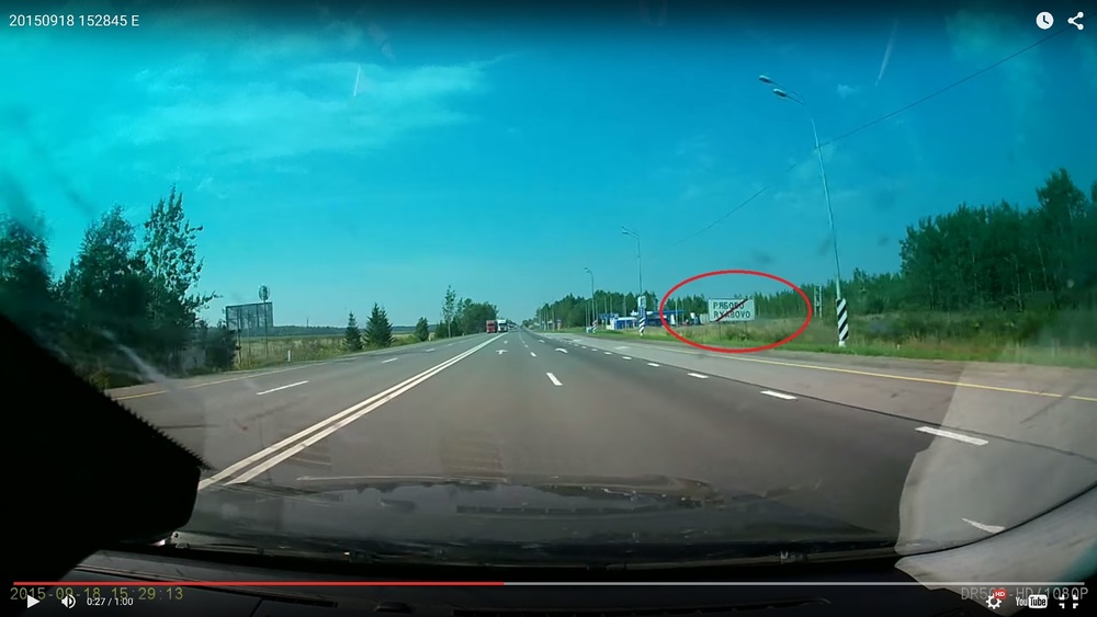 2. На 27 секунде знак, окончание населенного пункта Рябово.