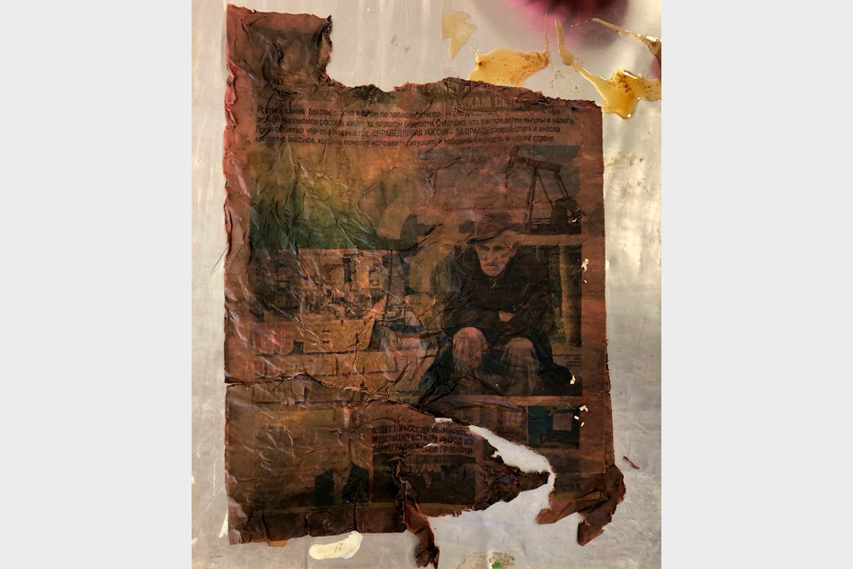 Газета, изъятая из кокона с телом Насти Муравьевой и пропитанная биологическими следами