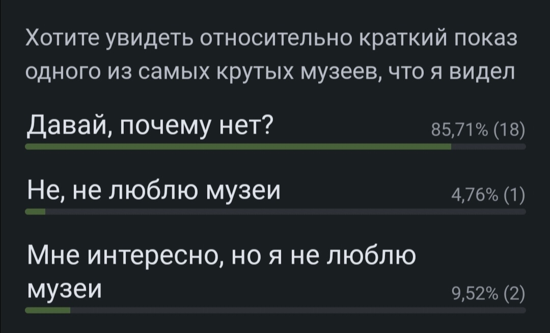 2 GalaSword Серия Екатеринбург - музей. Опрос и ролик Екатеринбург - один из самых классных музеев(продолжение) 8 месяцев назад Собственно, судя по опросу, людям интересно увидеть этот музей, а я не в праве отказывать в показе этого шедевра мировой инженерии. Смотрите и наслаждайтесь. [моё] Екатеринбург Музей Музей техники Путешествия Путешествие по России Разнообразие Разное Видео Видео ВК Длиннопост Ещё 0