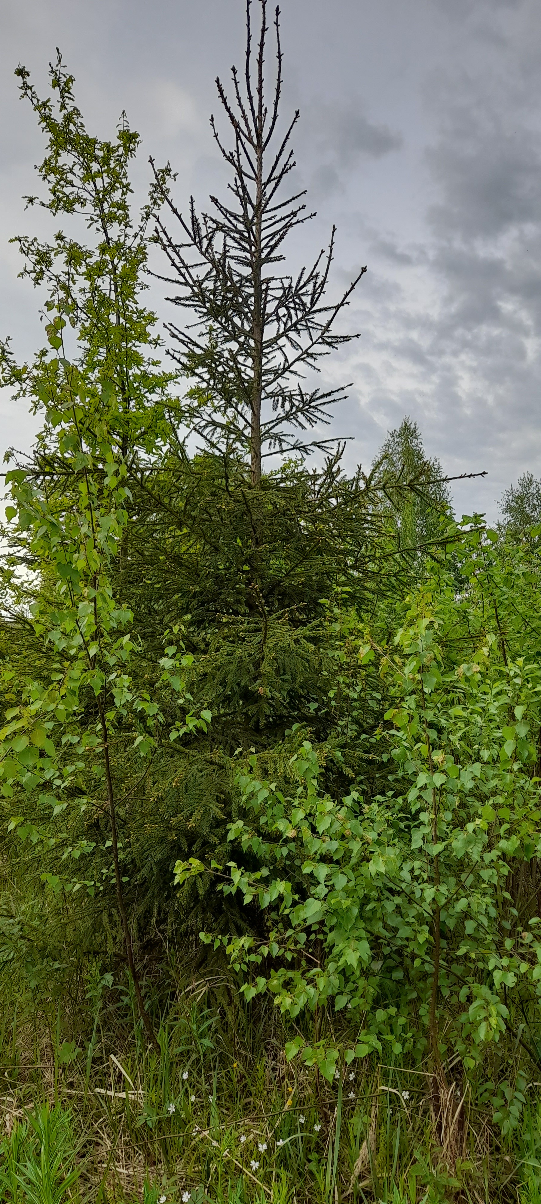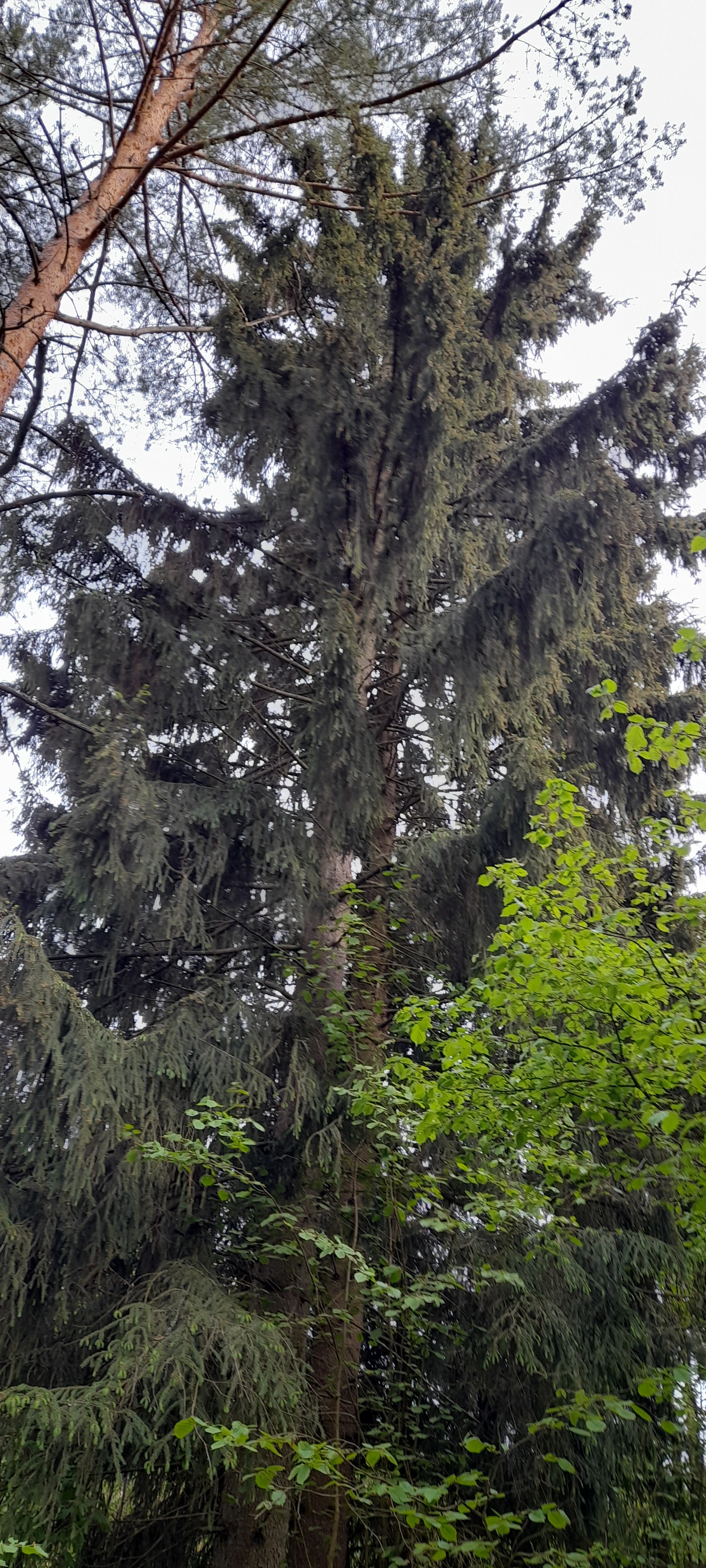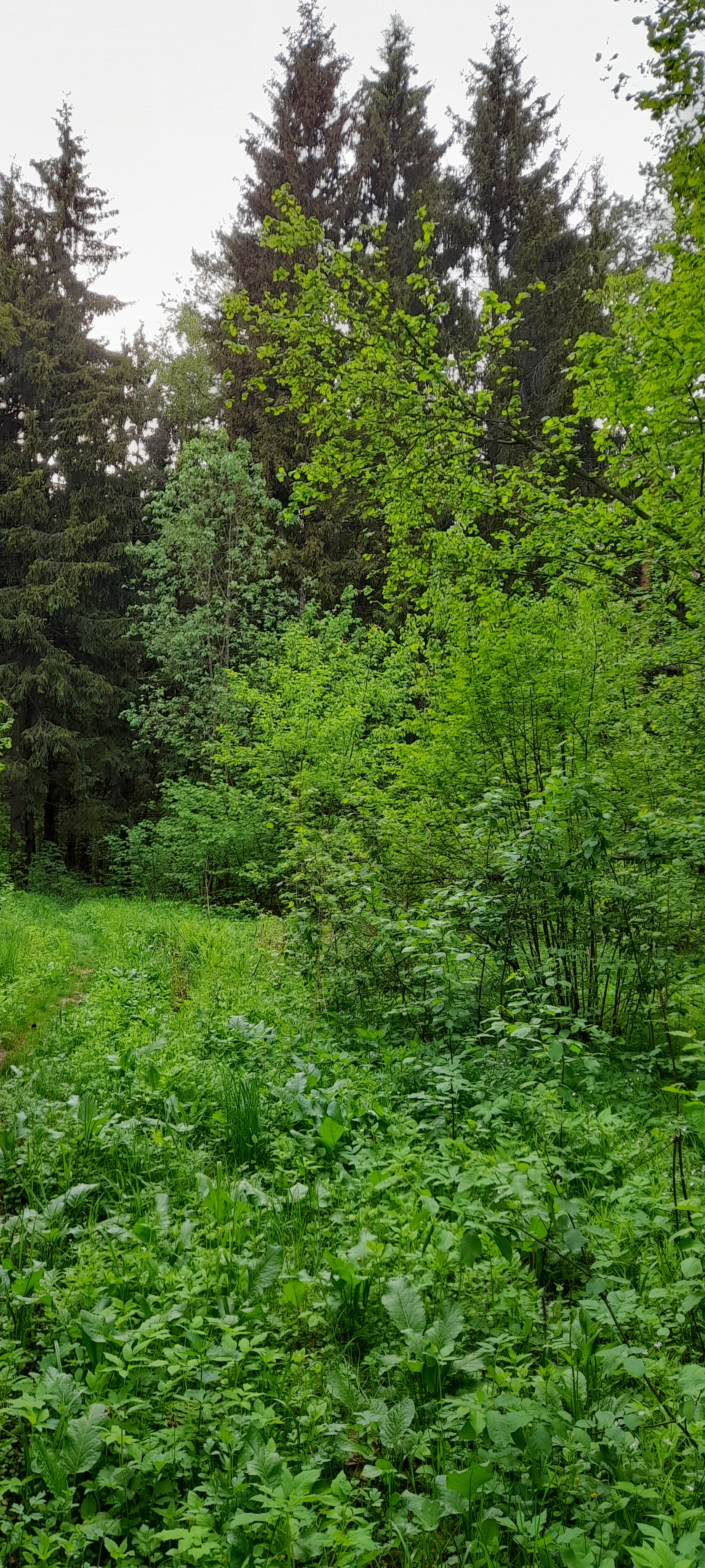 Общий вид хвойных посадок: линия соприкосновения ёлок и сосен