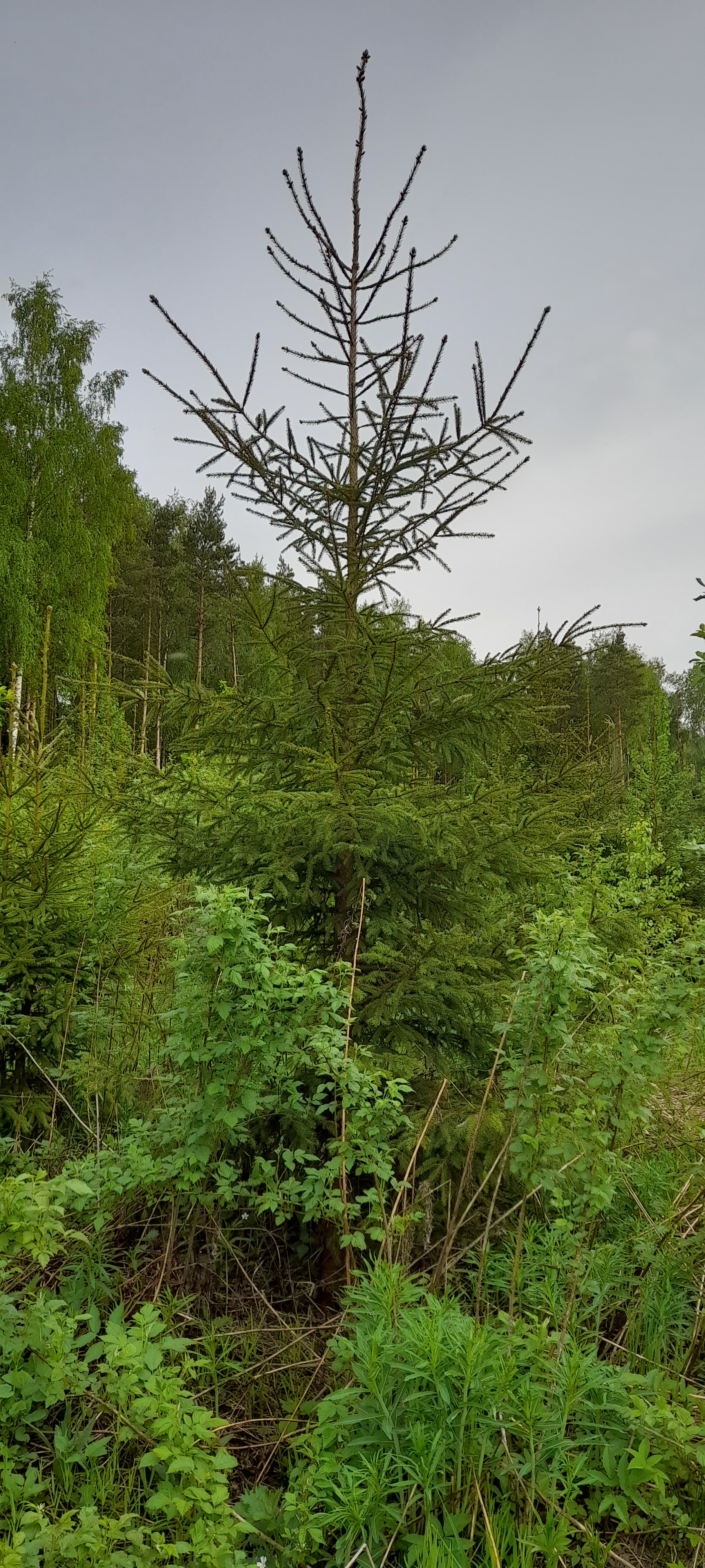 В прогалах между взрослым лесом местное лесничество высадило рядами молодые ёлки: