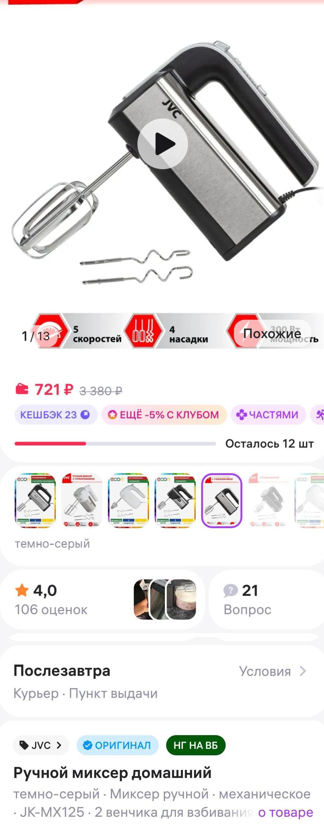 Короче купил на ВБ миксер, низких оборотов там просто не предусмотрено, даже жидкость он расплёскивает во все стороны на первой скорости, если вы захотите сделать нежное пюре, придётся отмывать всю кухню, разговора о приготовлении теста на такой скорости вообще нет.