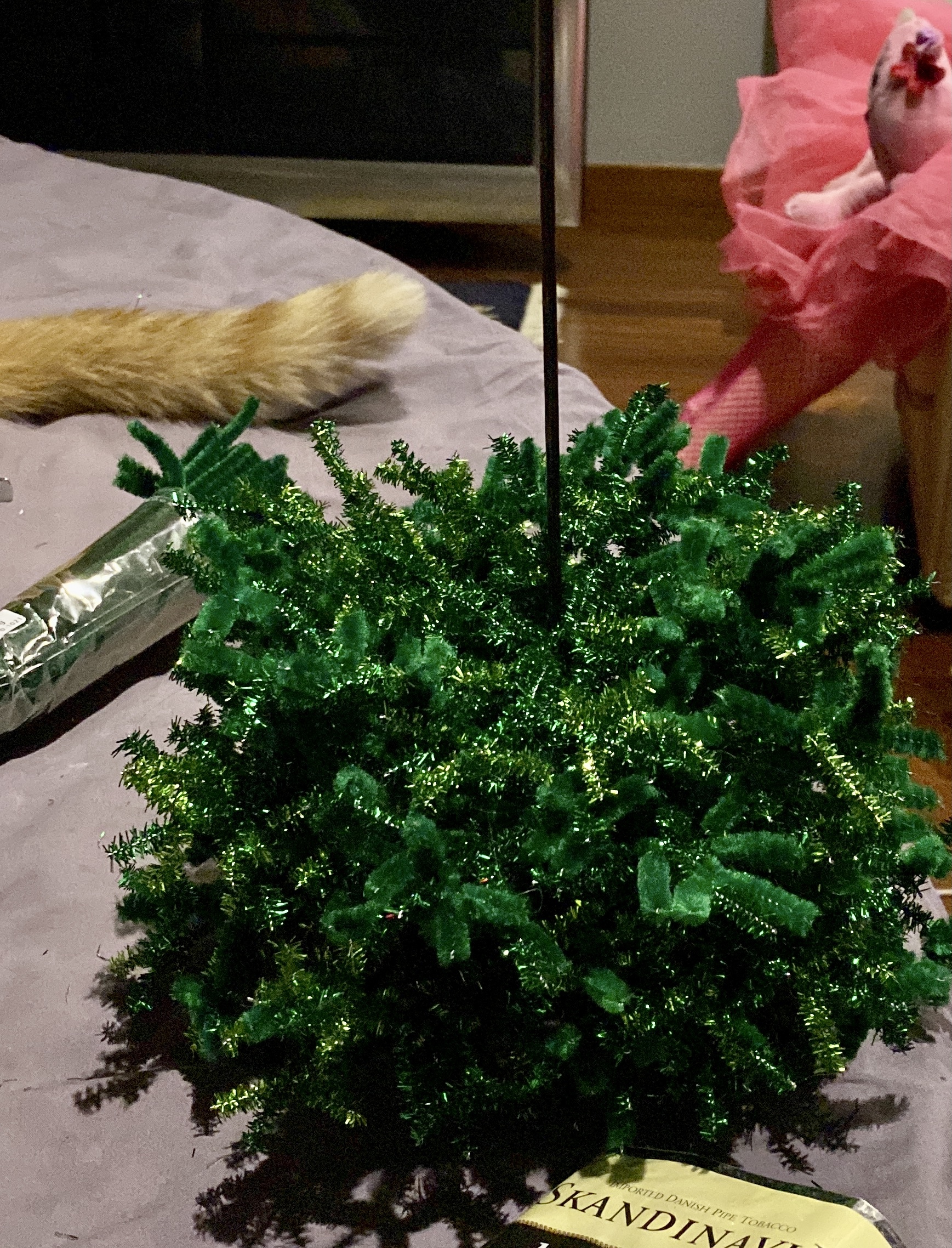 И дальше требуется только много-много задротства, пока не закончатся ершики, или кожа на пальцах (ершики колючие сцук), или место на палочке. По мере приближения к вершине длина веток должна становиться короче.