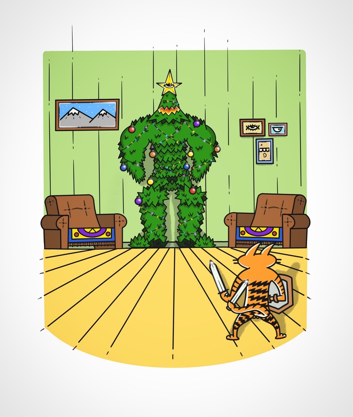 1832 xkerk 6 лет назад Елка глазами кота Решил обыграть тему(знаю, что не первый) вечной битвы кота и елки. [моё] Кот Ёлки Каляки-маляки Новый Год Борьба