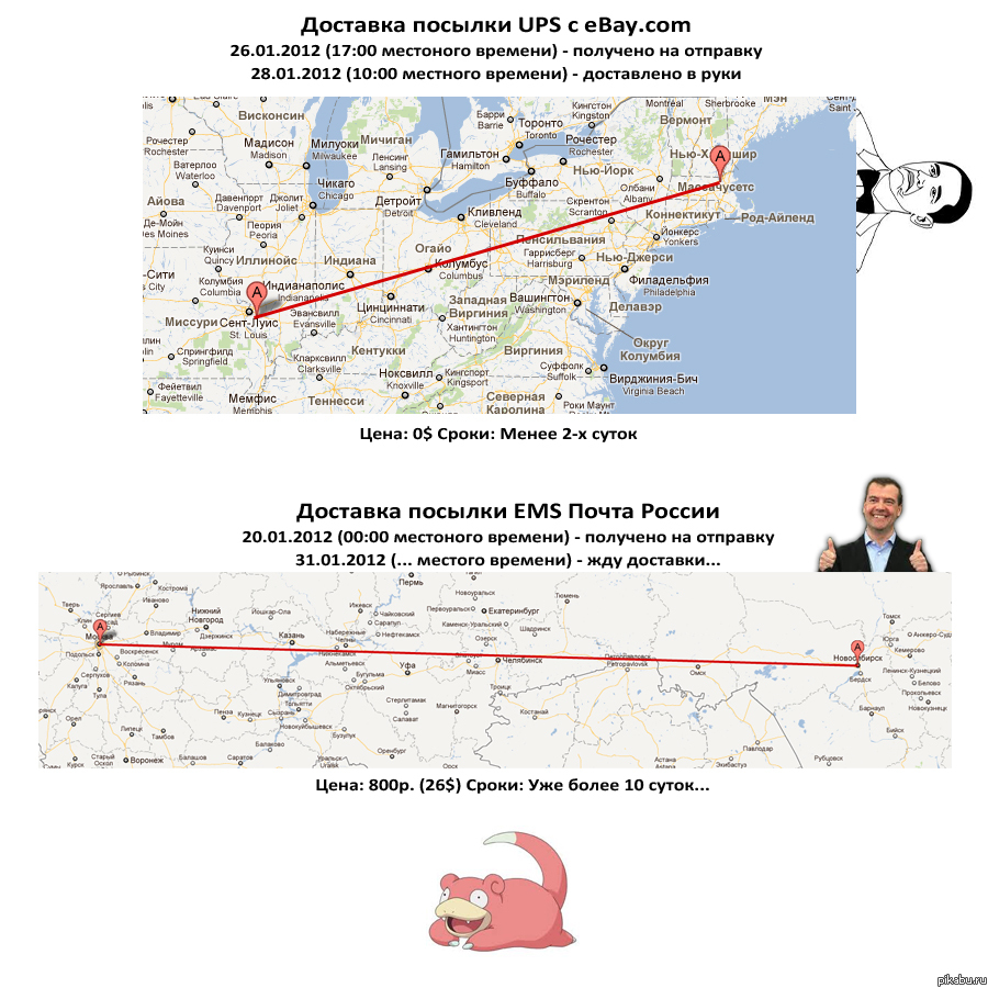 598 acik EMS Почта России VS. UPS USA 13 лет назад Достаточно плотно работаю и с тем и с другими. Но почта россии всегда меня улыбает. Мы в этом плане еще где-то на уровне совдепа, причем глубокого. Происшествия