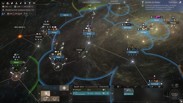 Проблема в том, что в одной звездной системе можно построить только одну ферму, зато военных кораблей можно наклепать сколько угодно, и, рано или поздно, это придётся делать, ведь начнётся война всех со всеми. Каждое спущенное с верфи судно увеличивает влияние милитаристов. По идее, народ должен ощущать усталость от войны и стремиться к миру, но всё происходит с точностью до наоборот. Через пару итераций фракция милитаристов начинает стабильно получать на выборах заслуженные 86% голосов. Если не захватывать бездумно системы, накапливая штраф от колонизации, усталость от войны сменяется «эйфорией» от войны, остановить которую может только магия Центризбиркома. Есть, конечно, вариант подкупа избирателей, но, чтобы подкупить миллиарды людей, нужна уйма денег и влияния, чего у воюющей страны особо не водится.