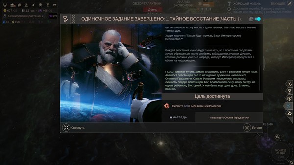 Фракций в игре мало, но каждая имеет уникальную цепочку сюжетных квестов. Невозможно сказать, чей подход лучше: путь Stellaris, когда из набора типовых инструментов можно "вылепить" собственную расу разумных бабочек-воительниц, или путь Endless Space, когда народы созданы заранее, но за каждым из них стоит конкретный лидер, с собственной философией, системой взглядов и мечтами о будущем.