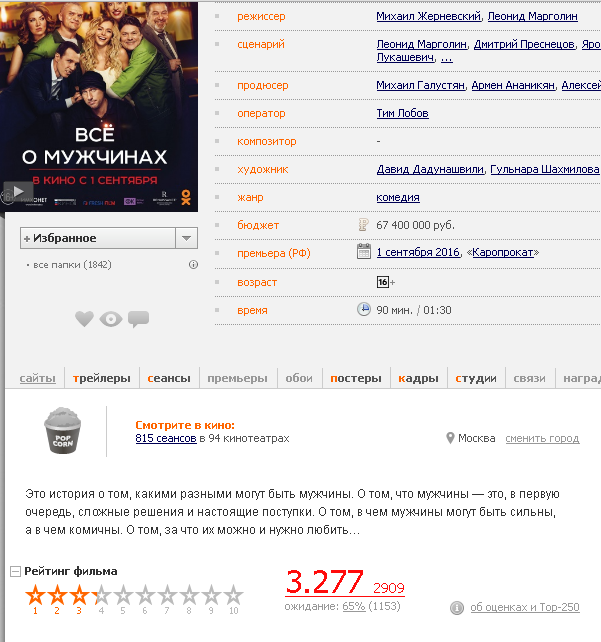 415 Mr.George «Enjoy movies» накручивает рейтинг своему очередному шедевру 9 лет назад Рано утром 1 сентября, в день выхода фильма «Всё о мужчинах» в прокат, ему было выставлено почти тысяча оценок от 6 до 10. Фильмы Студия Enjoy Movies Сайт КиноПоиск Накрутка