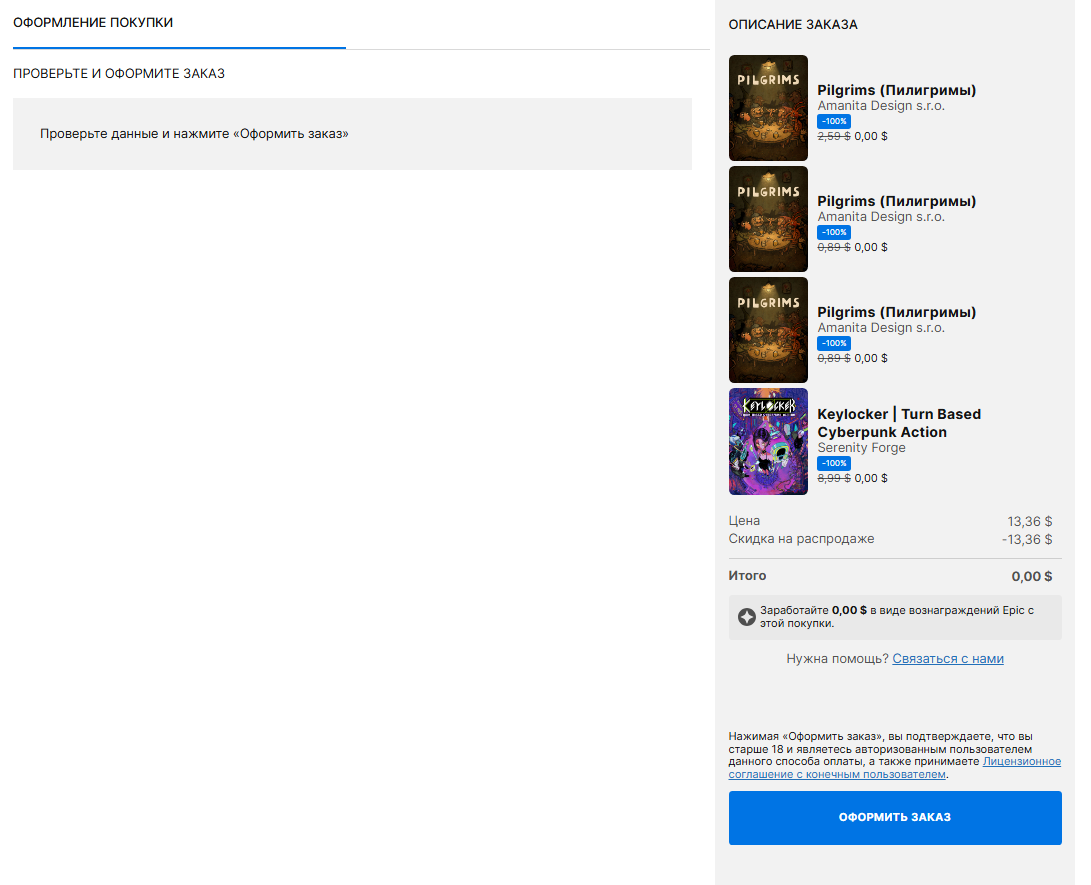 PS: чтобы воспользоваться прямыми ссылками активации халявы, Вы сперва должны быть залогинены в самом EGS магазине (иначе получите ошибку "отсутствует ID аккаунта, на который нужно привязать игры")
