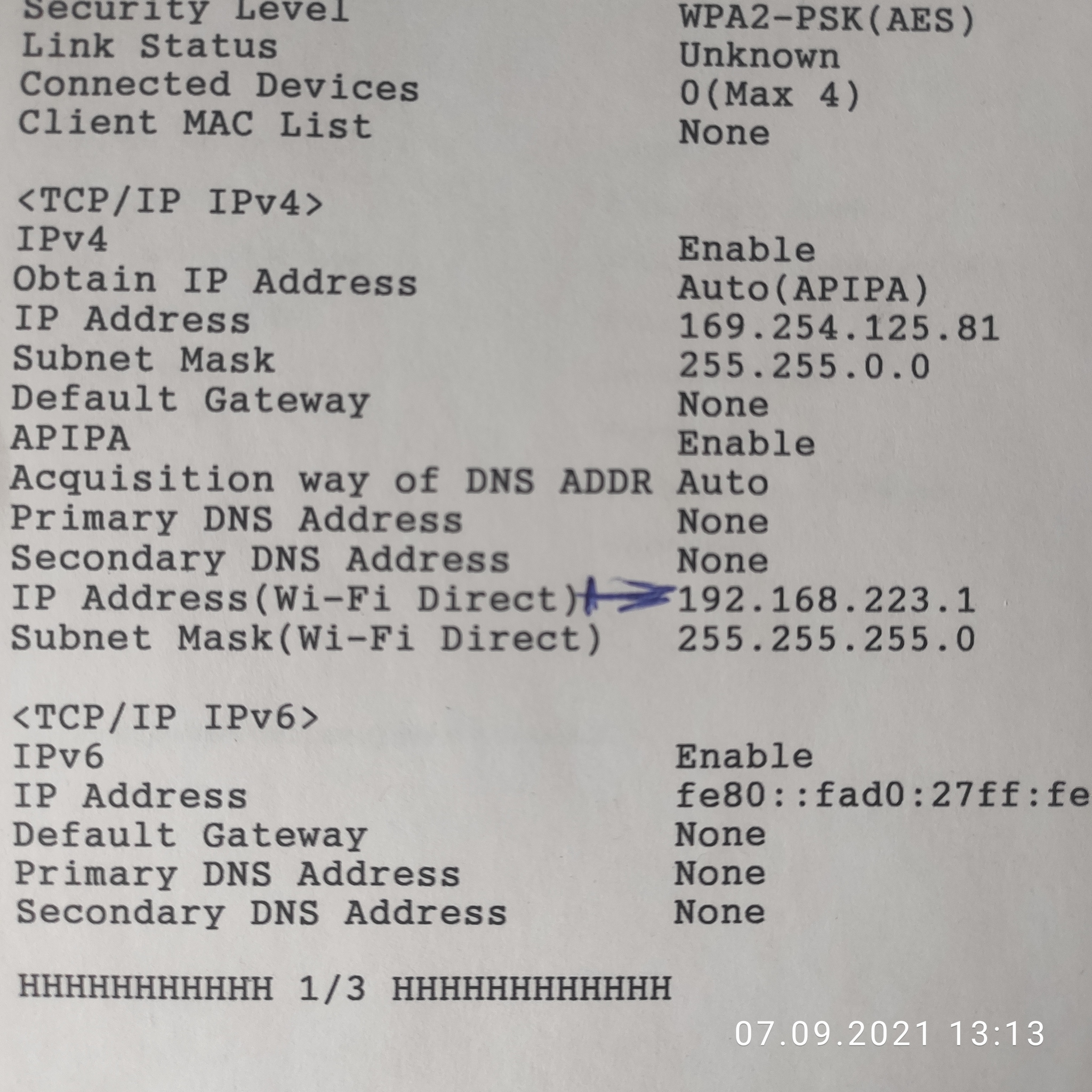 1) Необходимо распечатать страницу настроек wifi direct. Для этого нужно нажать и подержать кнопки wifi + сеть info (7сек)