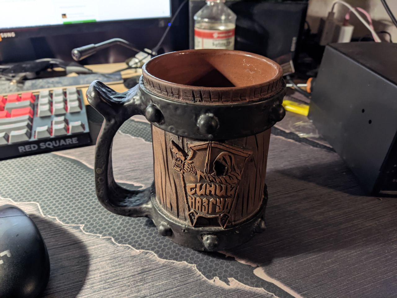 Почему-то абсолютно во всех глиняных кружках, что я юзал, пиво пенится как не в себя. Даже налить невозможно. Дома все подобные красивые поделия убрал в шкаф подальше и использую пивную чашу "Шхунер", из стекла.