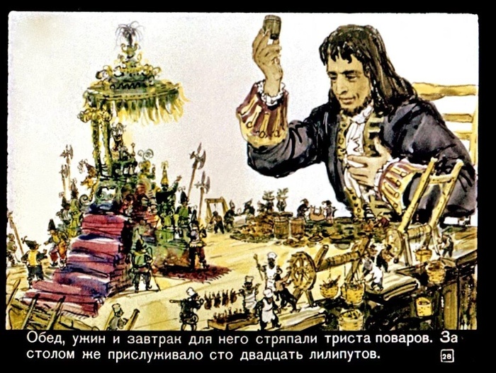 Как я уже говорил, всю ту лютую дичь, которую он сочинял, автор "Гулливера" старался облечь в максимально правдоподобную форму. Именно поэтому, придумывая путешествия в страну лилипутов и великанов, он использовал привычное каждому англичанину соотношение фута и дюйма - 1 к 12.