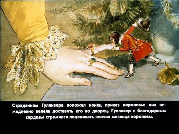"В числе предметов, вывезенных Гулливером из страны великанов, было, говорит он, – «золотое кольцо, которое королева сама мне подарила, милостиво сняв его со своего мизинца и накинув мне через голову на шею, как ожерелье».
