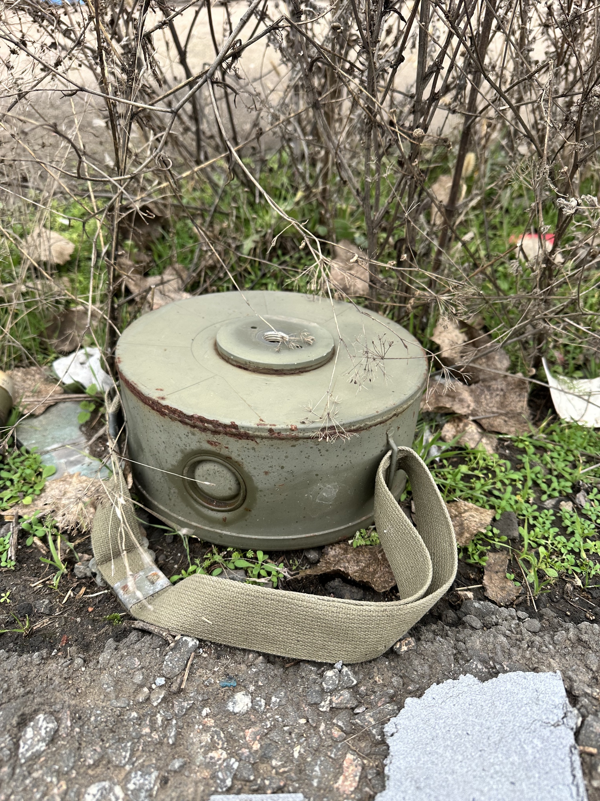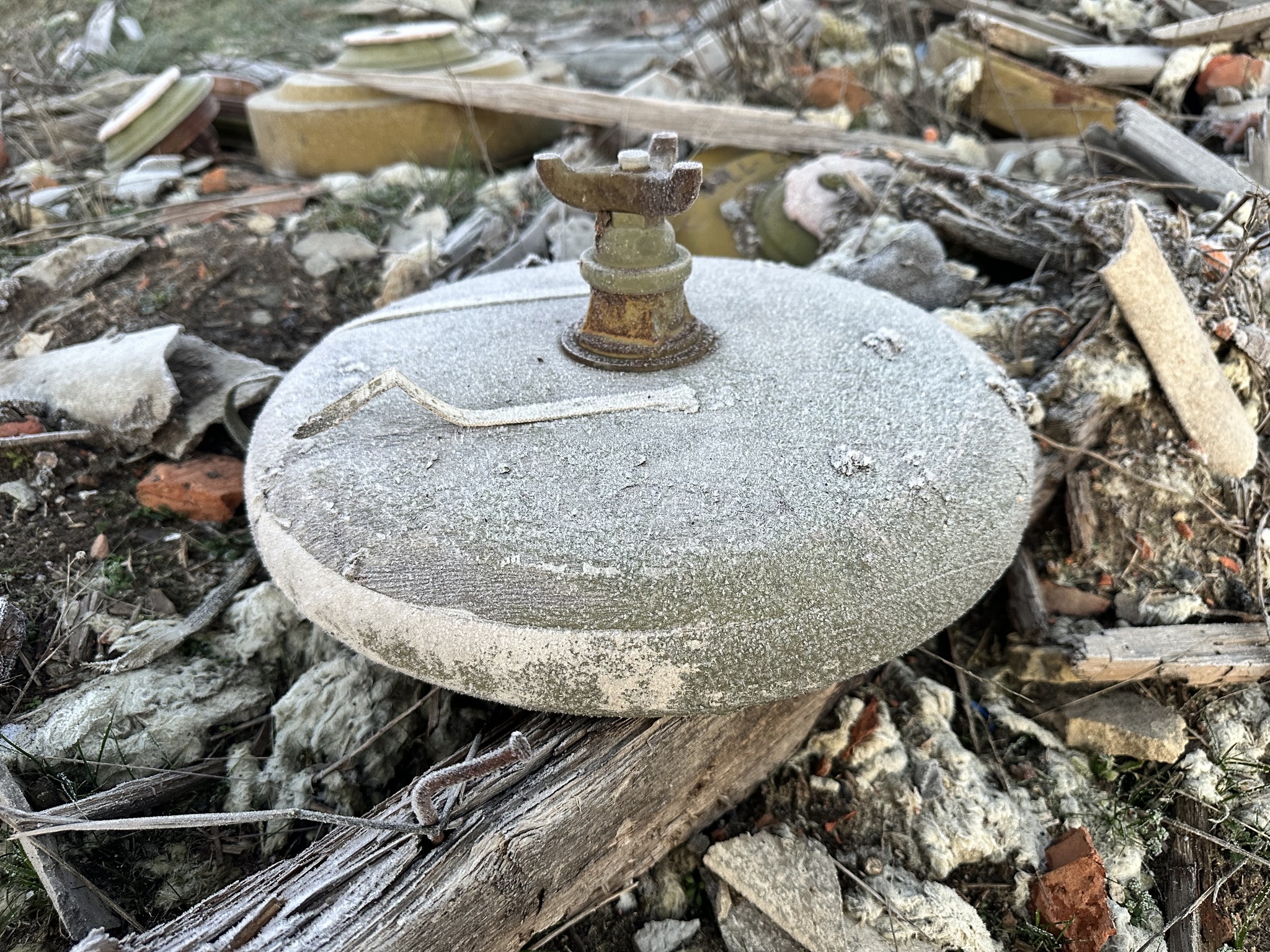Использует два типа взрывателя: обычный, противогусечный или датчик - антенну (штырь), который срабатывает, когда техника касается его днищем. 4,5 кг взрывчатки. Общий вес около 8 кг. Нажим от 130 кг. Больше никому не навредит.