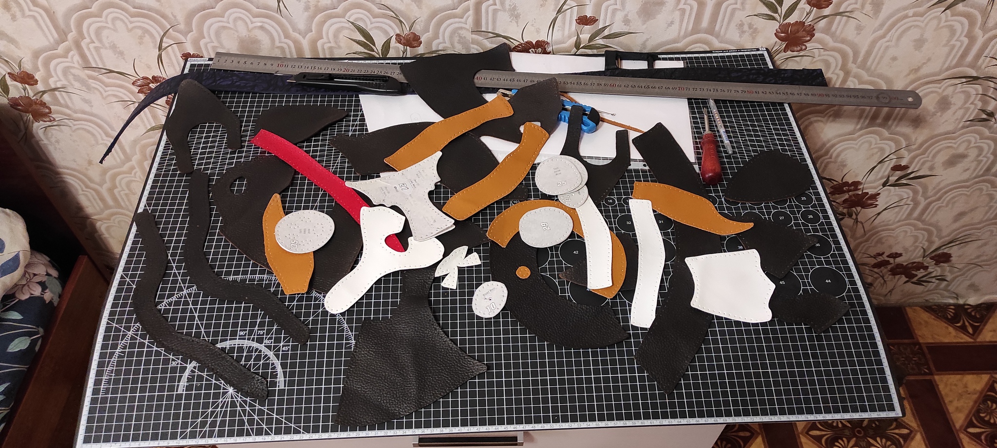 Нагуглилась выкройка, отдали кучу обрезков кожи редкого мебельного дермантина... Звезды сошлись. Пробиваем, вырезаем...