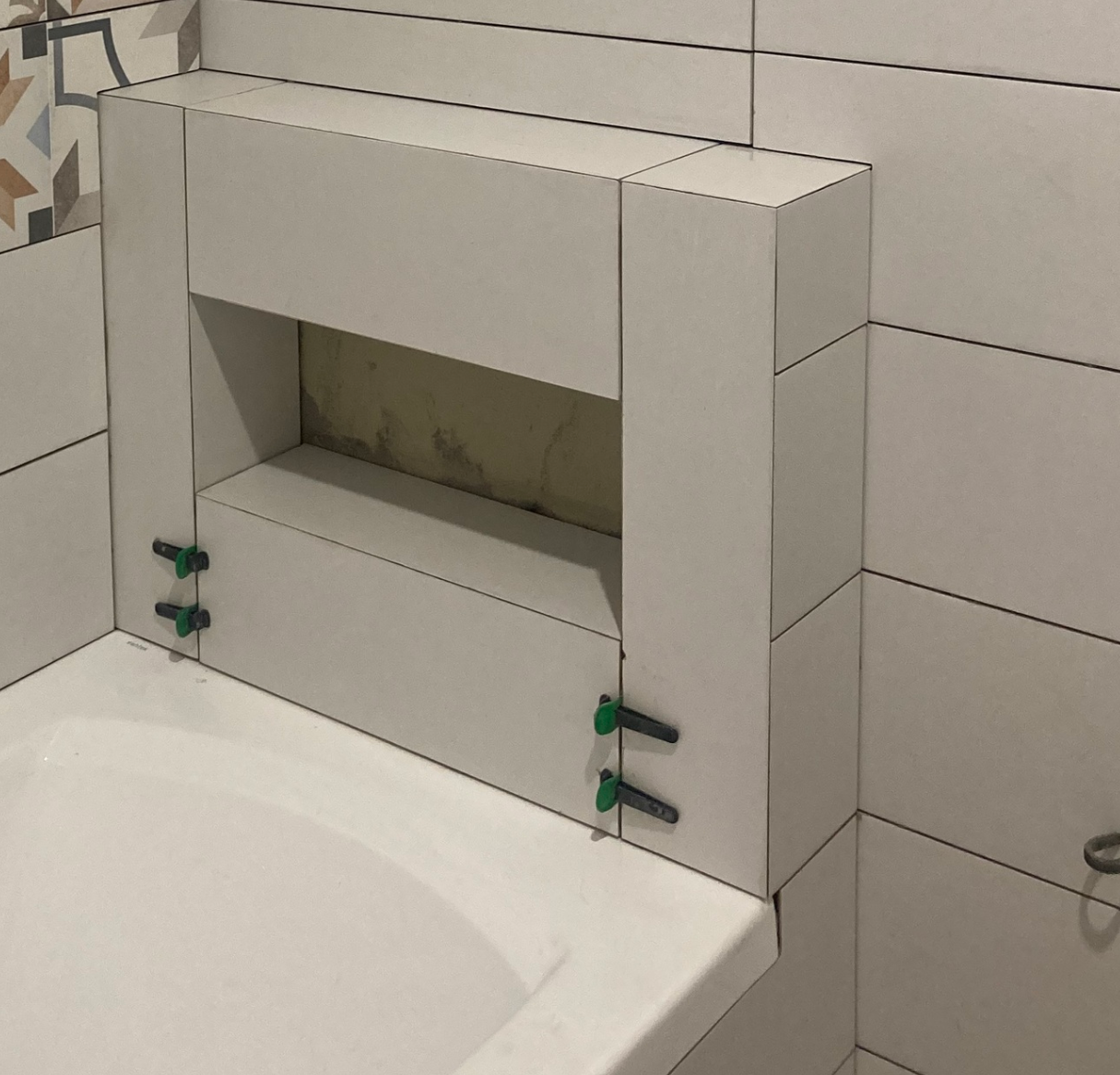 В голове формируется смутная картинка стиля Прованс. 😀 Ставим ванну. Кладем стеновую плитку. Как раз полотенцесушитель приехал. А тумба с раковиной простояла год. Потом это скажется… 😄