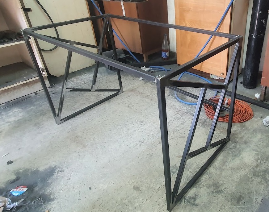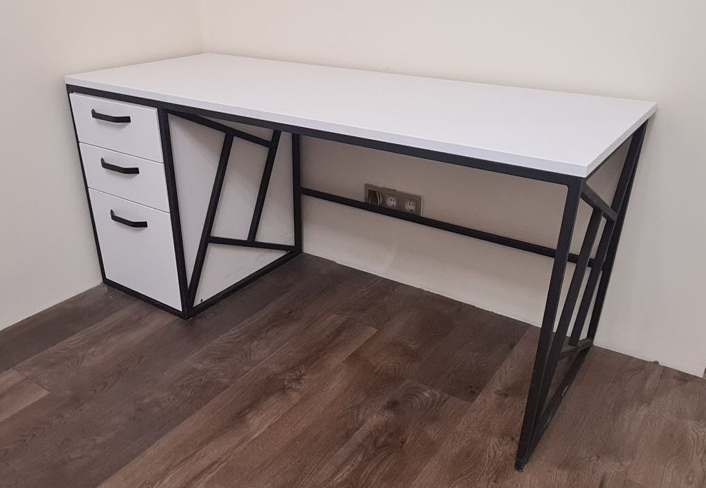 По итогу стол вышел крепким и очень "графичным", на вид кажется низковатым, но по итогу сидеть очень удобно.