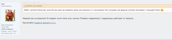 Да и вообще, лично я ржал все утро, особенно после того как пришел админ сайта и выставил предупреждение представителю бубубульки под ником "Qwintry.com", правда только устное(а жаль):