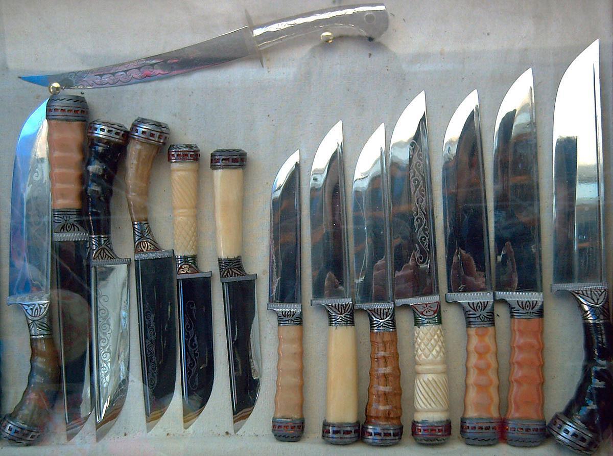 Классический таджикский корд с роговой рукоятью с гравировкой "П.В. от А.И." был передарен мне этим самым П.В. в ходе ритуально-протокольного обмена оружием. Я вручил дубок-телескоп, компакт-кистенек, не особо приветствуемый правоохранительными органами. Такие любят продавать в Турциях и Таях, и владеют ими наши недальновидные соотечественники как правило аккурат до таможенного перехода. Корд был красивый и функциональный, как шеф-нож на кухне поработал на ура.