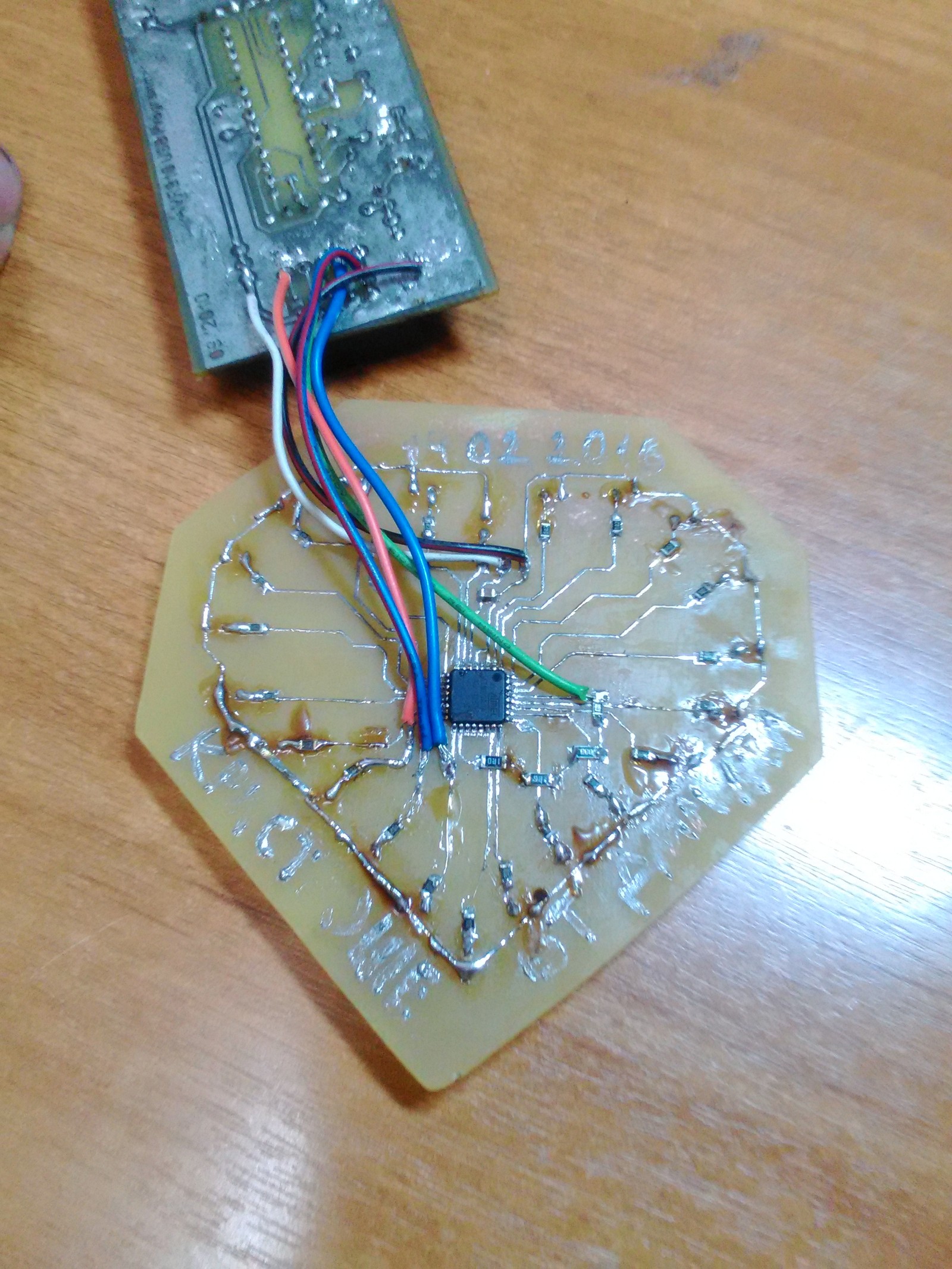 Плата с уже распаянными элементами и подпаянным программатором для программирования и отладки. Вы можете запрограммировать ATmega8 в компьютерных сервисах за символическую плату. Писал программу в Eclipse, к которому прикрутил AVR-GCC.