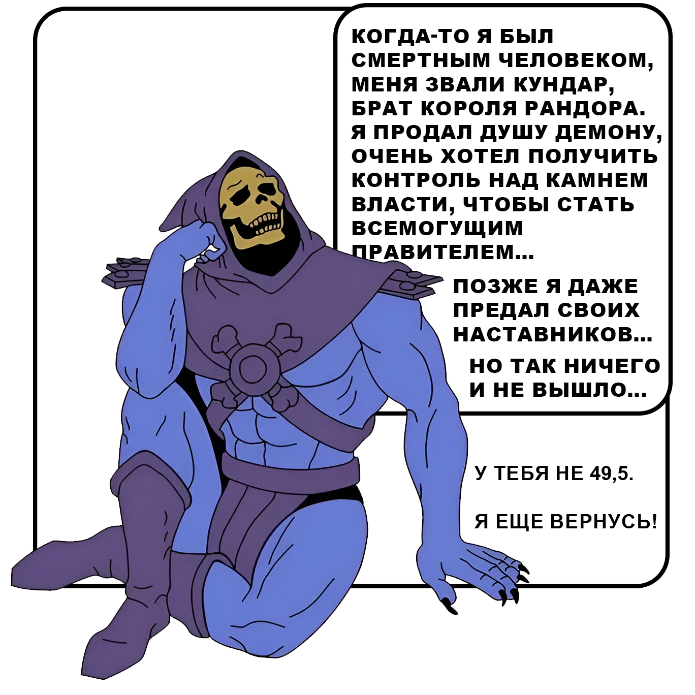 9 13iangel Юмор Еще вернусь... 10 месяцев назад [моё] Скелетор Секрет Я вернусь Юмор Трагикомедия Трагичность 1 1 Ещё 0