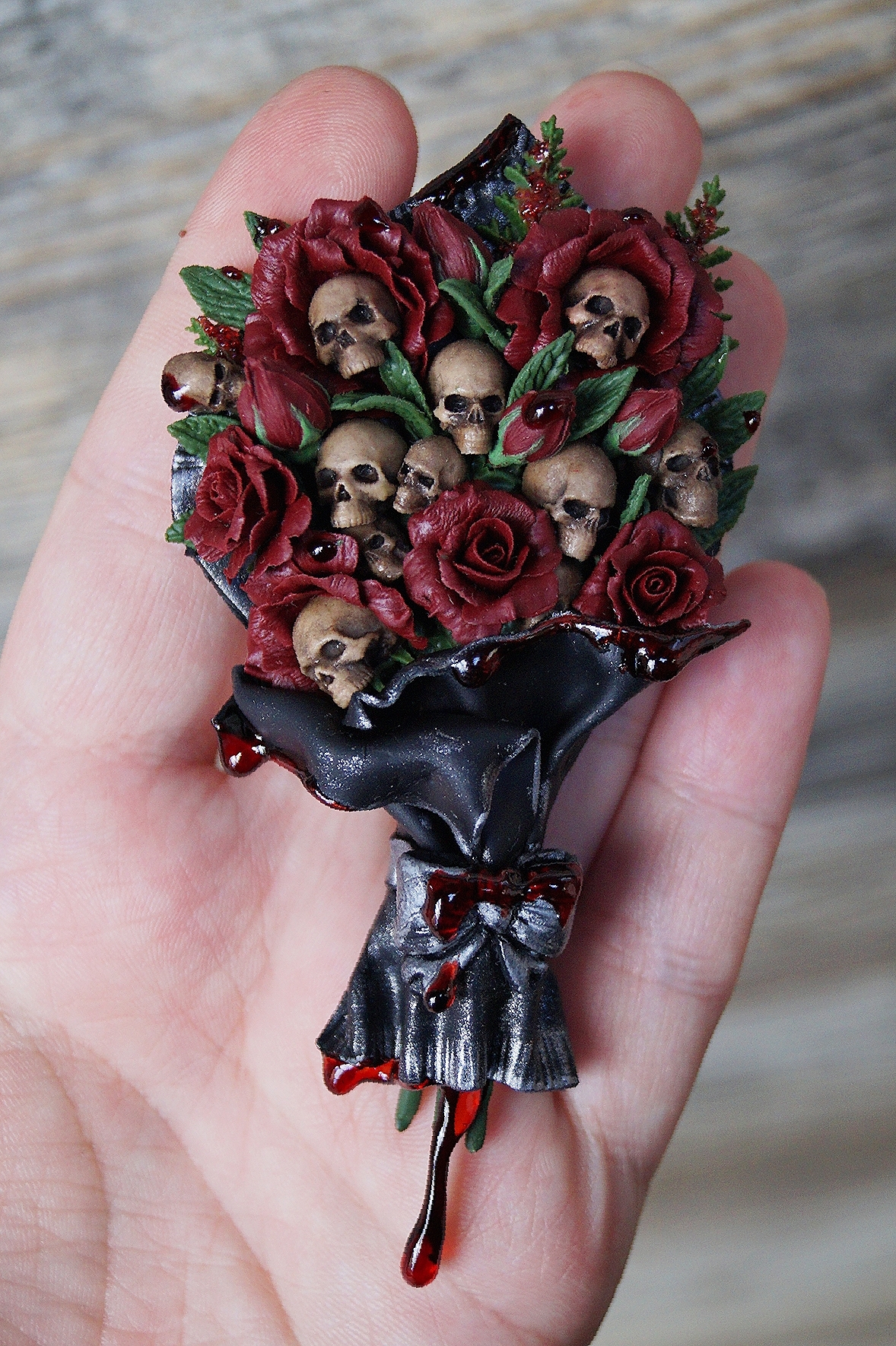 Полимерная глина уф смола, акрил, витражная краска . Каждый череп на проволоке
