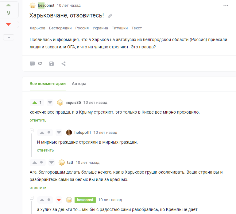 В общем пробежался по профилям тех, кто отписался в посте "Очнитесь, украинцы", тут будут сперва скрины комментов, потом их посты.