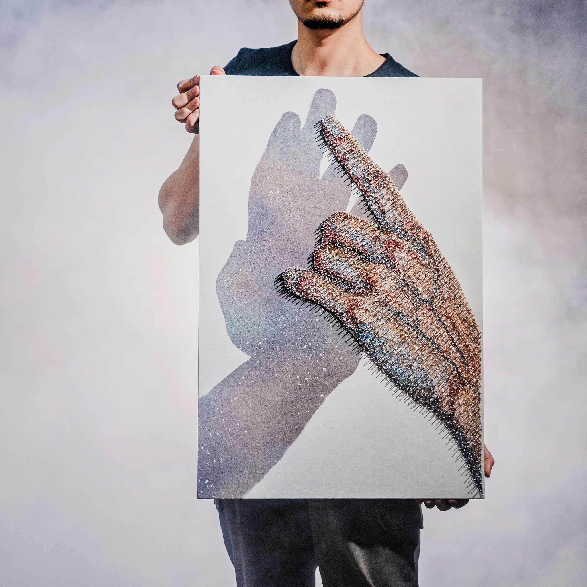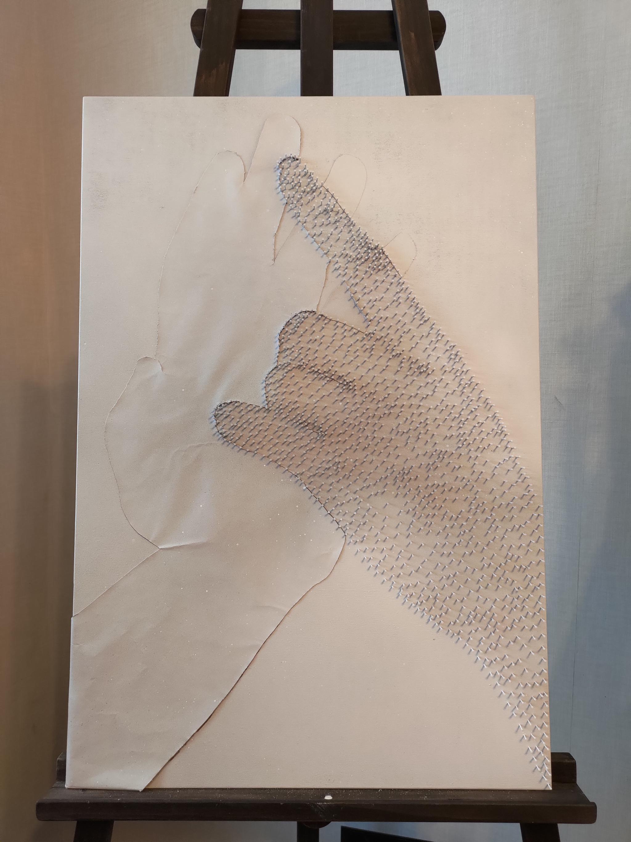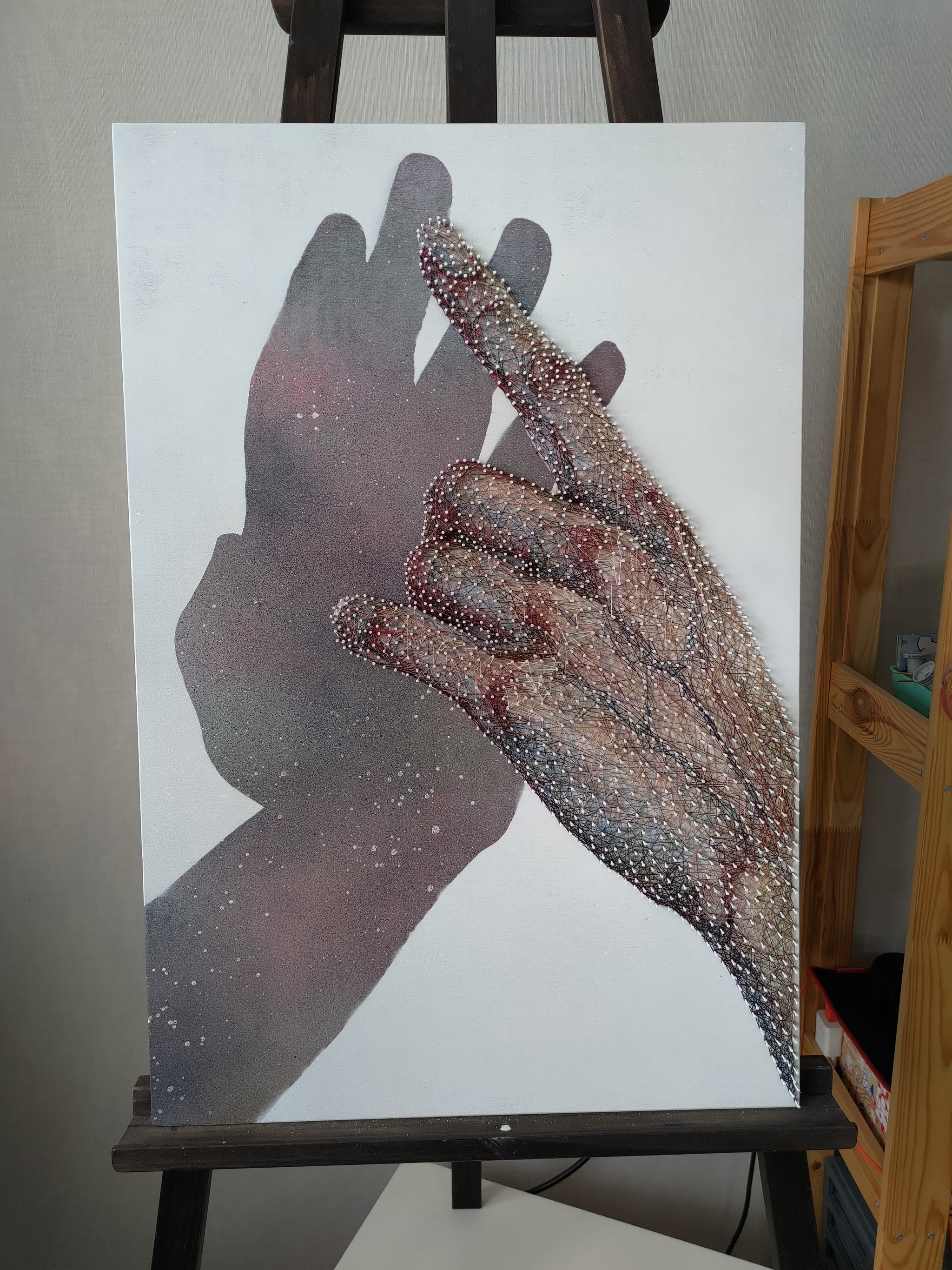 Потом забивание гвоздей, трафарет и ещё раз покраска