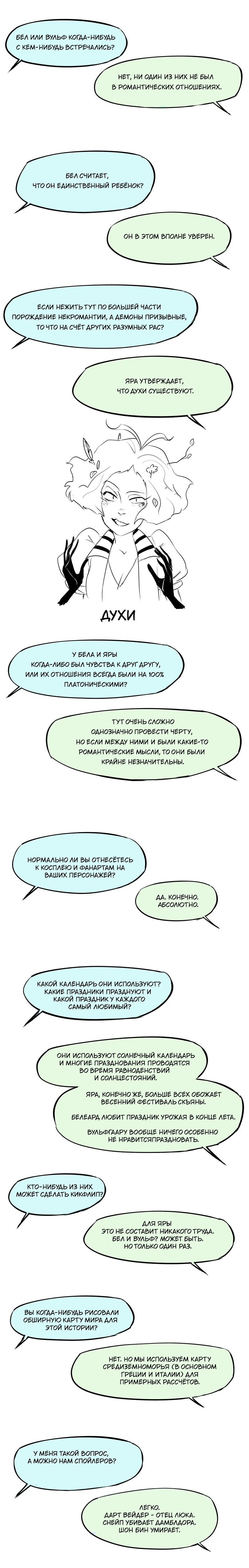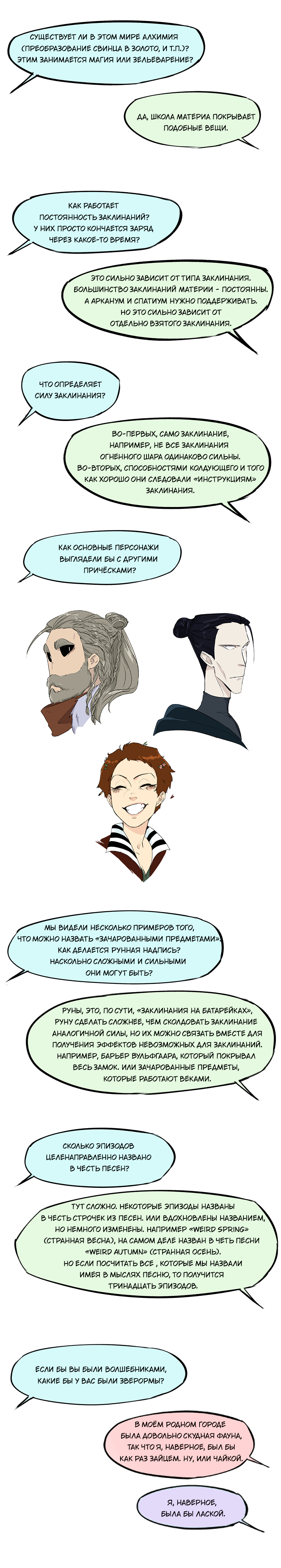 А вот наконец-то и QnA. Нам потребовалось некоторое время, потому что, как многие из вас, возможно, знают, Келхеор повредила спину прямо перед праздниками и поправлялась. Но сейчас она чувствует себя лучше, и, возможно, в ближайшее время мы возобновим публикацию новых эпизодов.