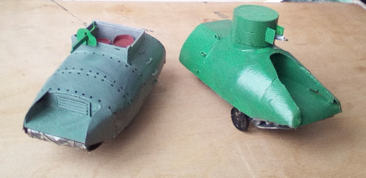 Ну и сравнение габаритов двух разных вариантов. В общем получается что несмотря ни на что, бронетанк из "Вездехода" получался никудышний.
