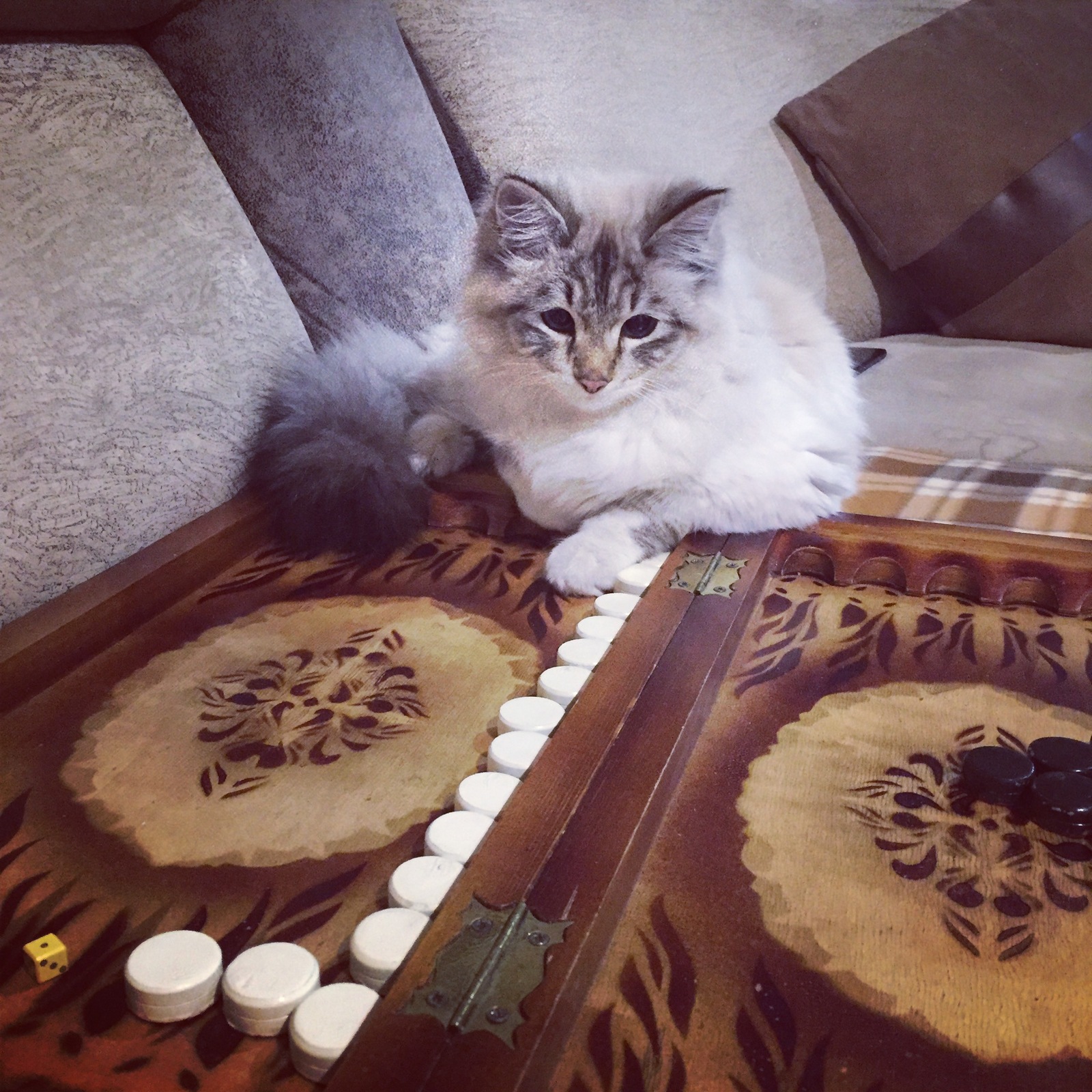 20 Qqwwertwfgyd Ещё партейку? 8 лет назад Снежный Барс, а по домашнему Барсик, наш котёнок, которого нашли в лесочке, ещё немного подрос [моё] Кот Азартные игры Вечер