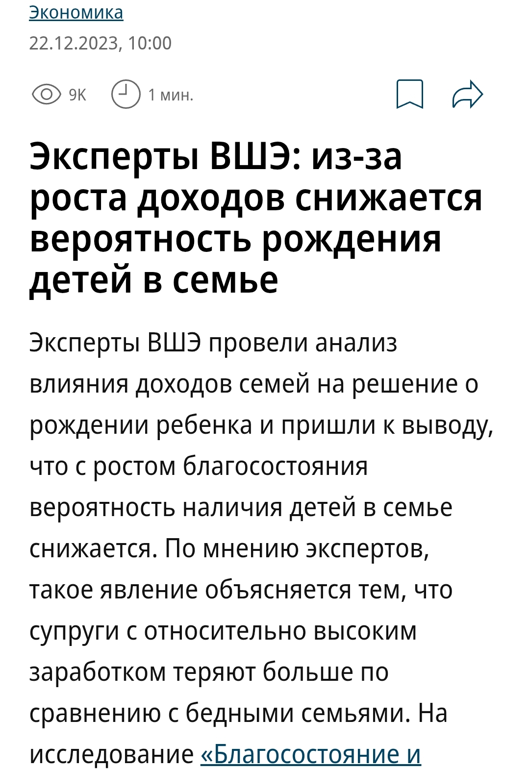 Вот и всё, если кратко о причинах. Но альтеративно одарённые могут продолжать натягивать сову на глобус и рассказывать по заученному, что люди не хотят рожать просто потому, что якобы с жиру бесятся и эгоисты...