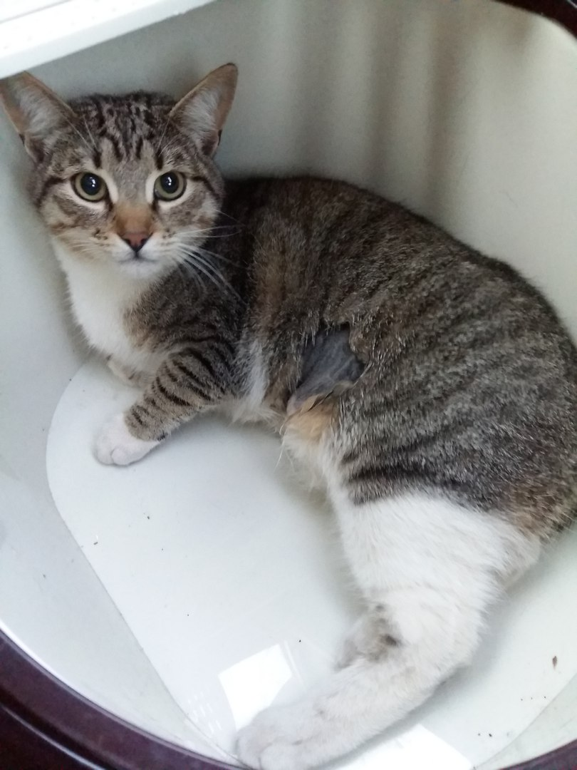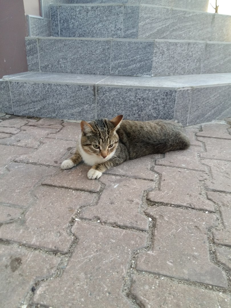 Тоже чья-то домашняя кошка, на животе шов от стерилизации (спасибо вам, хозяева!)