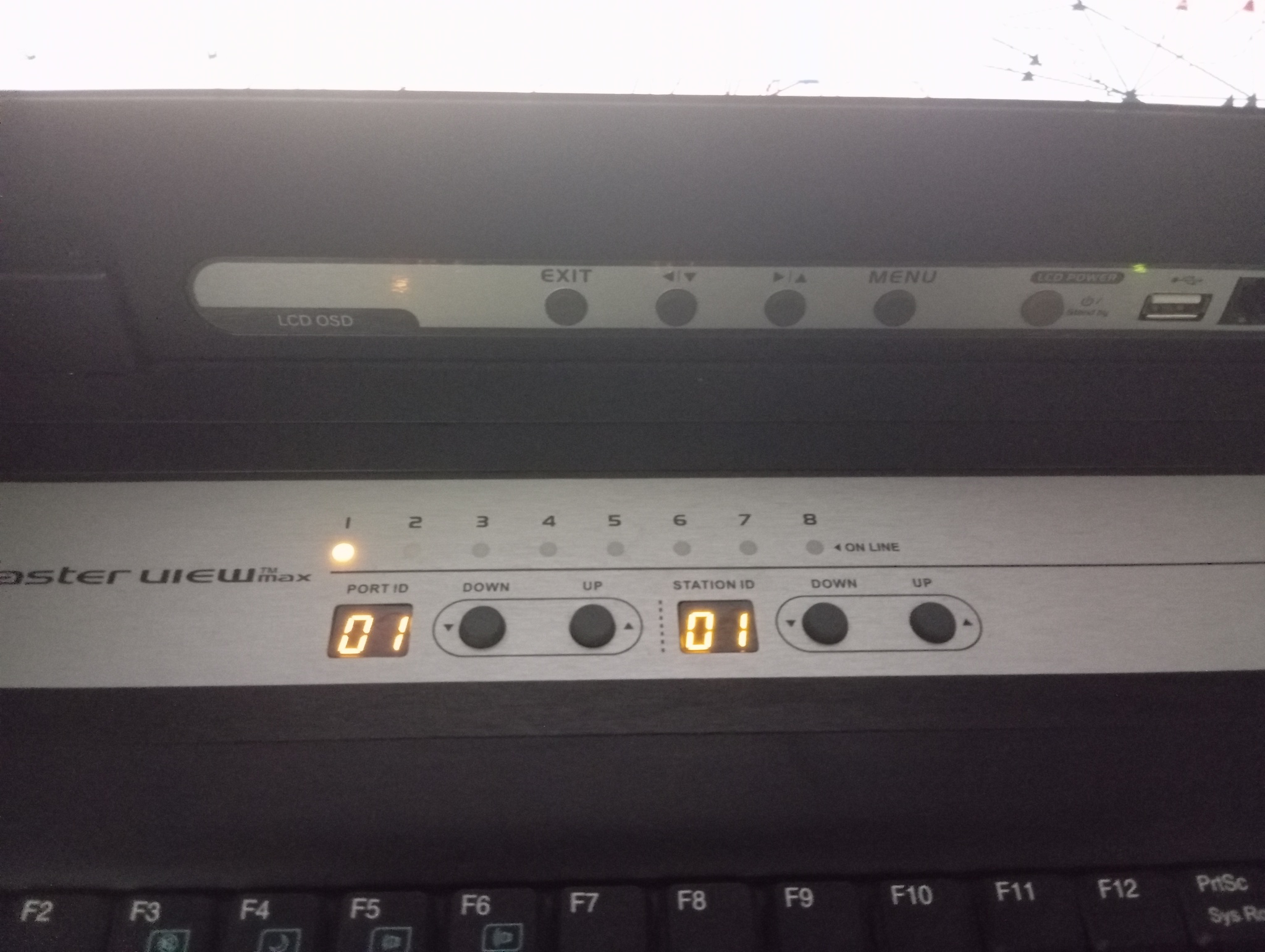 Нет, серые кнопки вызывают меню монитора. На фото не KVM-переключатель, на фото KVM-консоль ATEN CL1000M — монитор-клавиатура-тачпад, больше ничего.