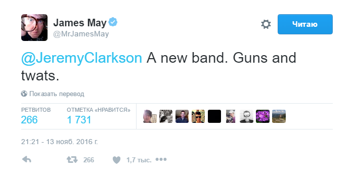 90 partizan136 Если бы у ребят из Топ Гира была музыкальная группа 9 лет назад Кларксон: "Мне кажется это должно быть обложкой музыкального альбома"Мэй: "Новая группа. Guns and twats" Top Gear The Grand Tour Джереми Кларксон Оружие X (Twitter)