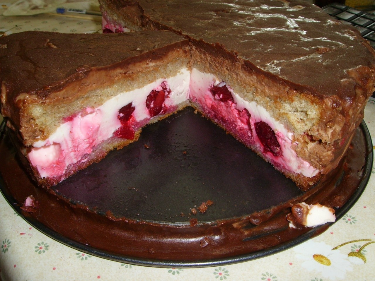 С ним всё не так)) Это просто коржи, промазанные кремом, неаккуратные притом)) Но вкусно! Впрочем, тогда как-то не особо была ещё развита культура украшения тортов, поэтому от ужаса никто в обморок не упал))