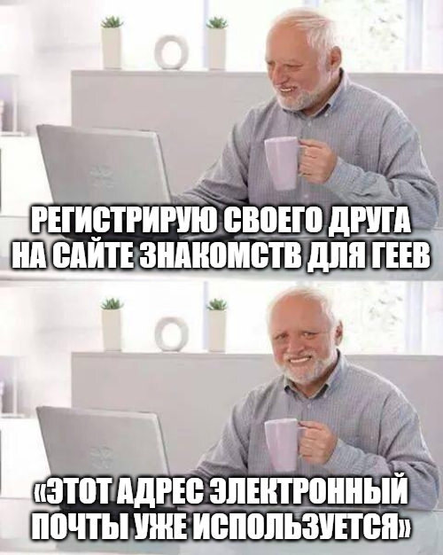 284 Небезопасный контент (18+) Авторизуйтесь или зарегистрируйтесь для просмотра Heishere Юмор Если друг оказался вдруг... 1 год назад Мемы Юмор Картинка с текстом Гарольд скрывающий боль Геи 33 4 2 1 Ещё 0