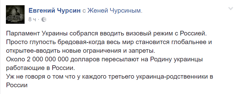 Кроме всего прочего нужно понимать, что в данном случае речь ведь идет не о выездных визах для украинцев, а о въездных для россиян.