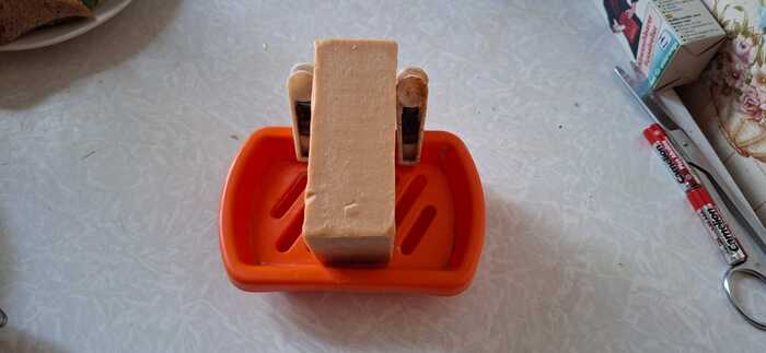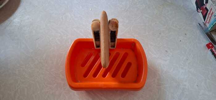 Для этого нужна обыкновенная мыльница и две прищепки бельевые.